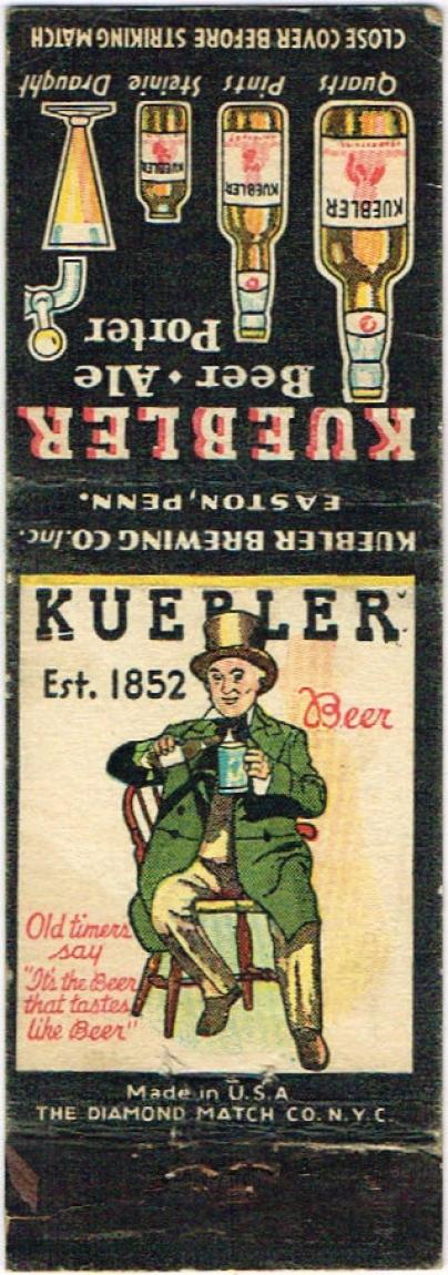 Kuebler Beer/Ale/Porter Matchcover Item #24950