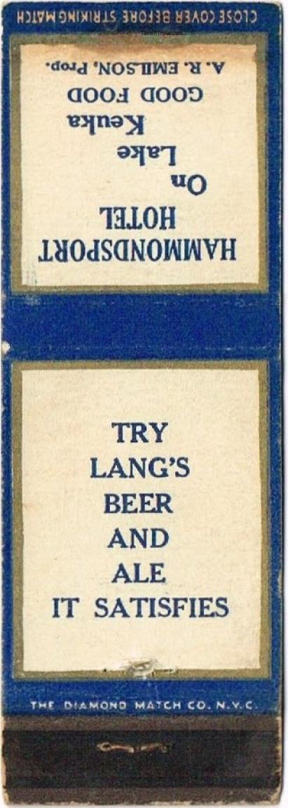Early Pre-Prohibition matchcover. Bottle shown is a blob top.  Striker reinforced with tape.