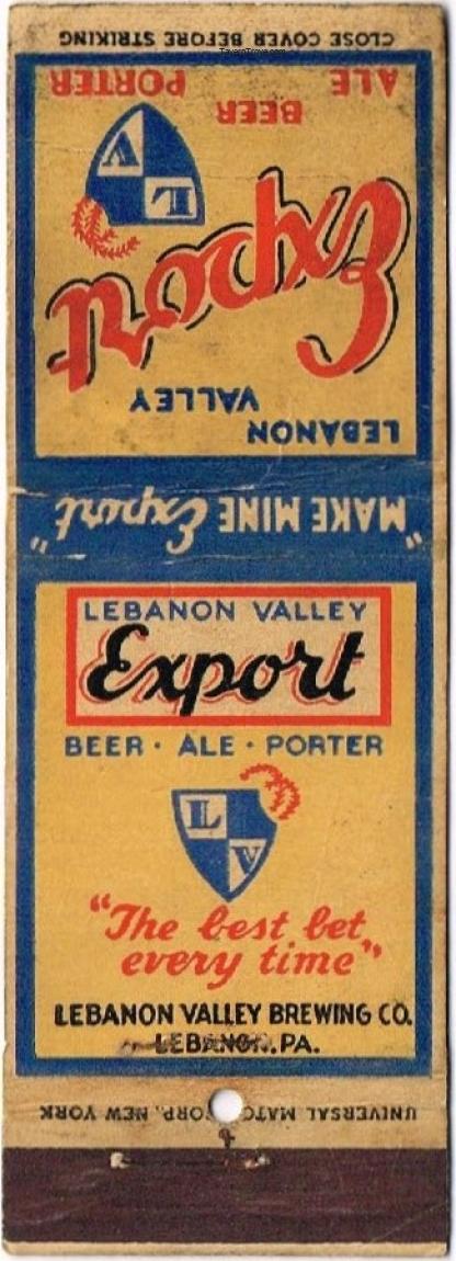Lebanon Valley Export Beer Dupe Matchcover Item #93513