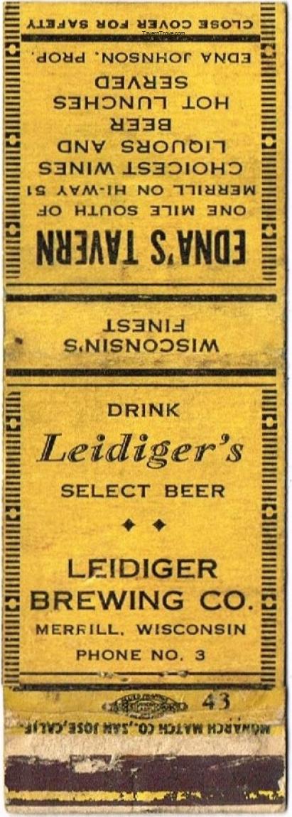 Leidiger's Select Beer Matchcover Item #114349