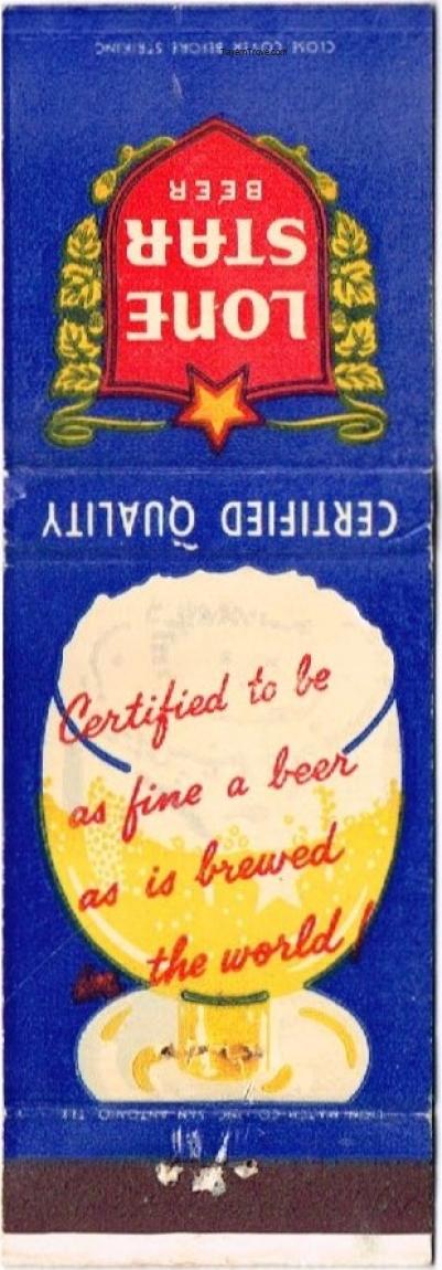 Lone Star Beer Matchcover Item #24459