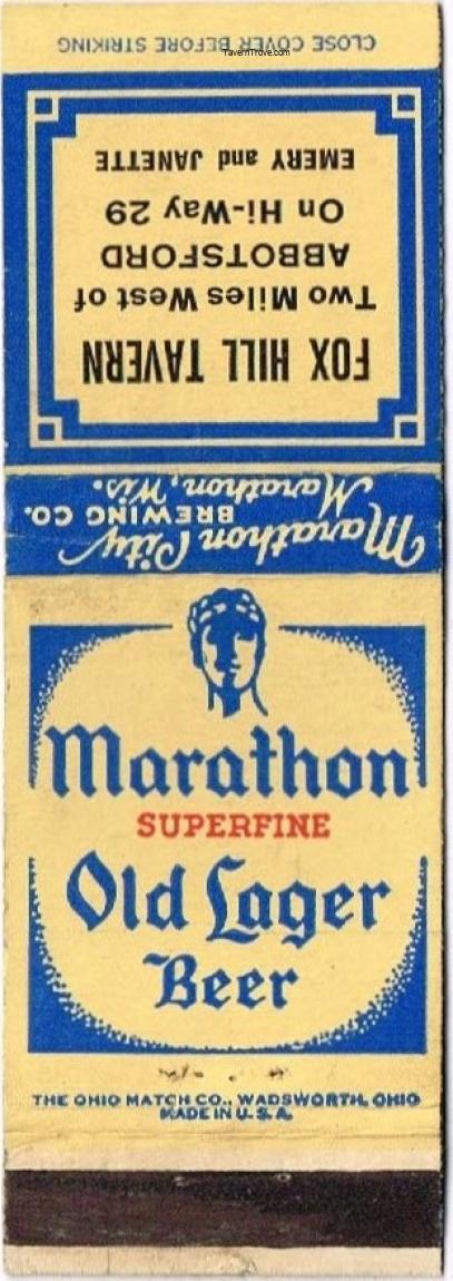 Marathon Superfine Old Lager Beer Matchcover Item #114851