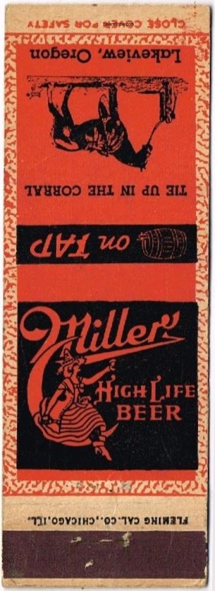 Miller High Life Beer Matchcover Item #114598