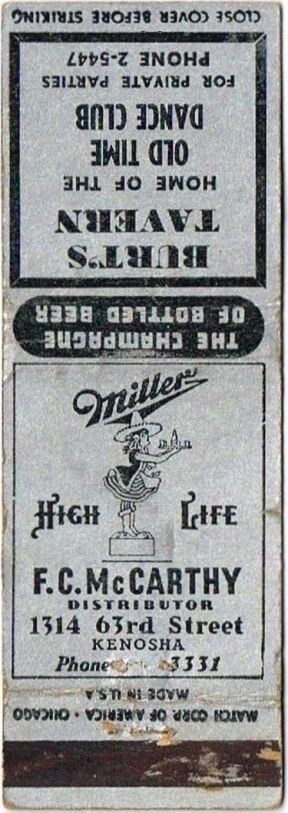 Miller High Life Beer Matchcover Item #114606