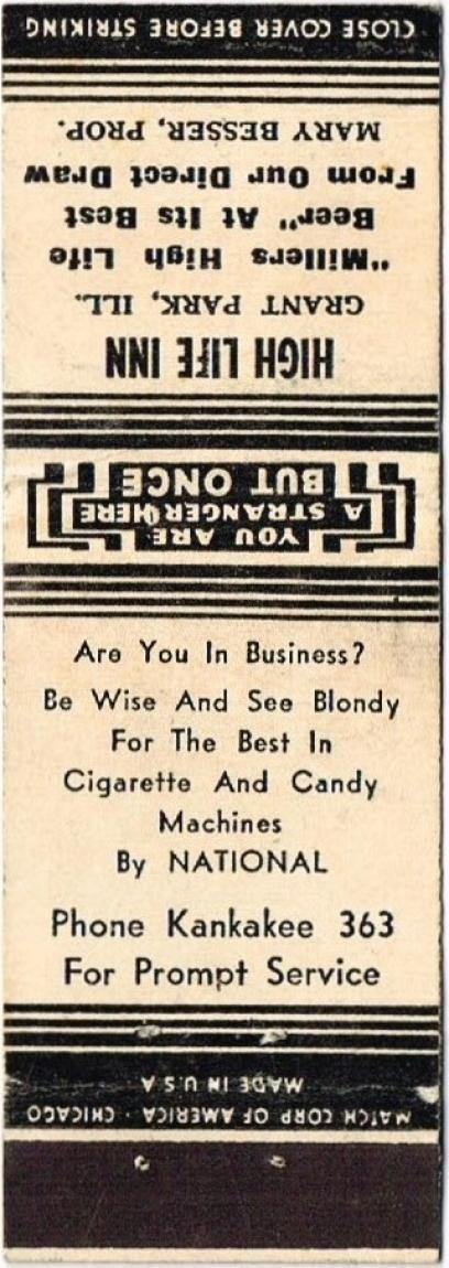 Miller High Life Beer Matchcover Item #114651