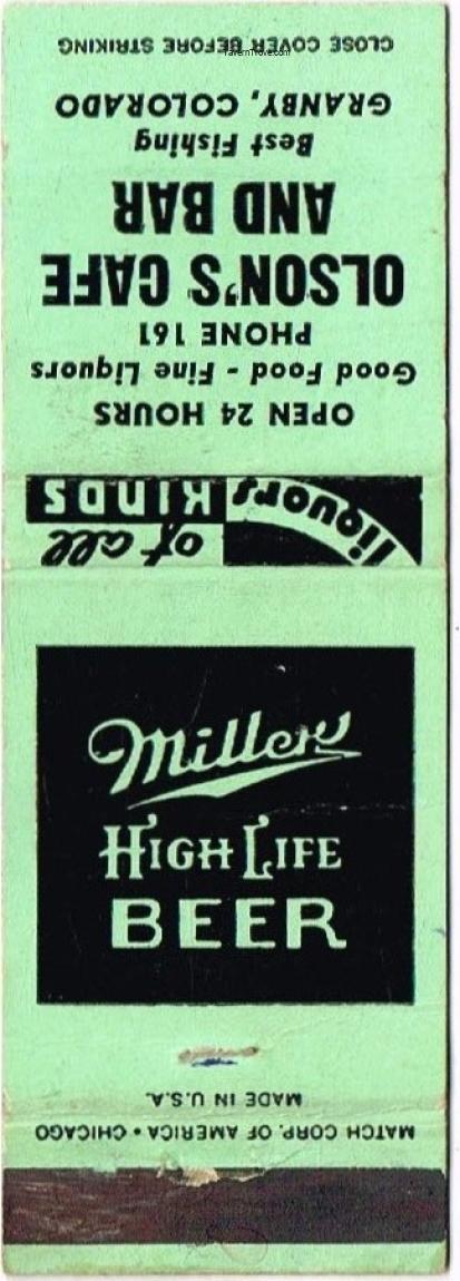 Miller High Life Beer Matchcover Item #25746