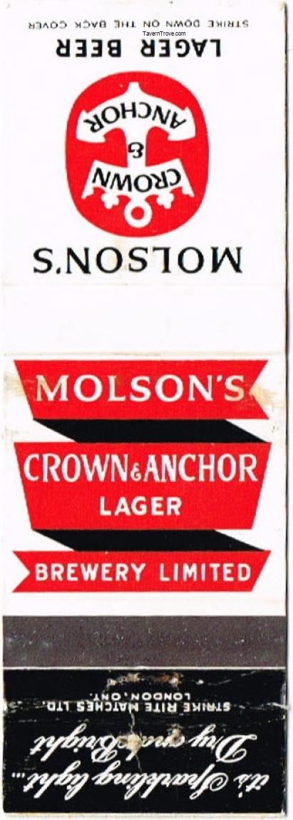 Molson's Crown and Anchor Lager Beer Matchcover Item #52505