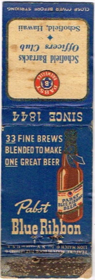 Pabst Blue Ribbon Beer Matchcover Item #101304