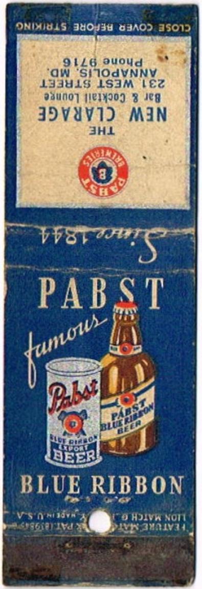 Pabst Blue Ribbon Beer Matchcover Item #102498