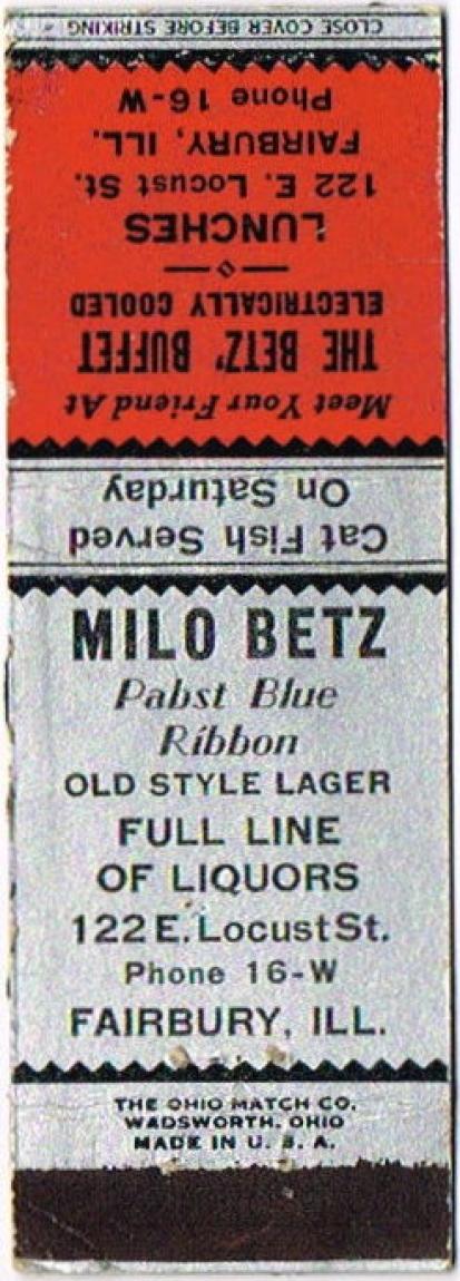 Pabst Blue Ribbon Beer Matchcover Item #106146