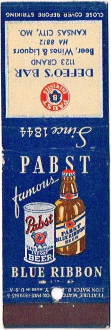 Pabst Blue Ribbon Beer Matchcover Item #106225