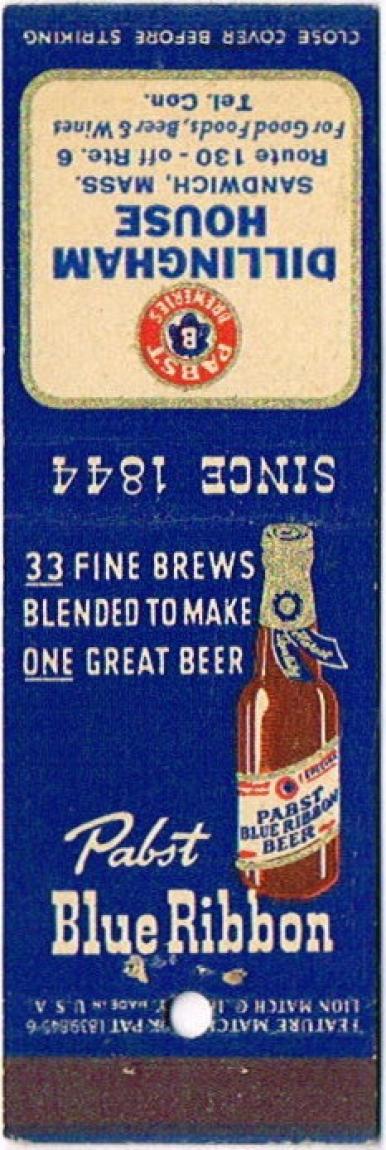Pabst Blue Ribbon Beer Matchcover Item #106230