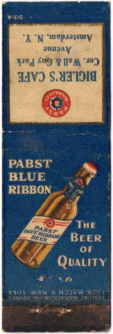Pabst Blue Ribbon Beer Matchcover Item #106250