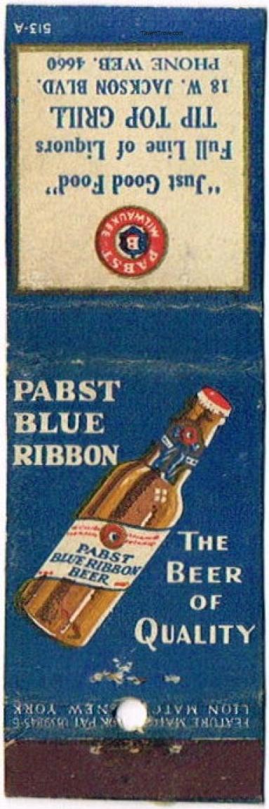 Pabst Blue Ribbon Beer Matchcover Item #106276