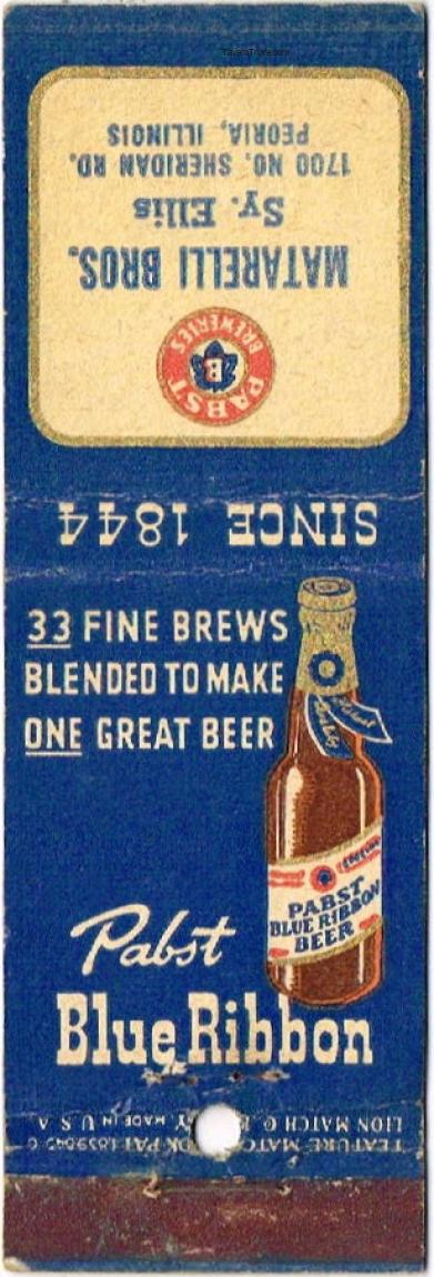 Pabst Blue Ribbon Beer Matchcover Item #37923