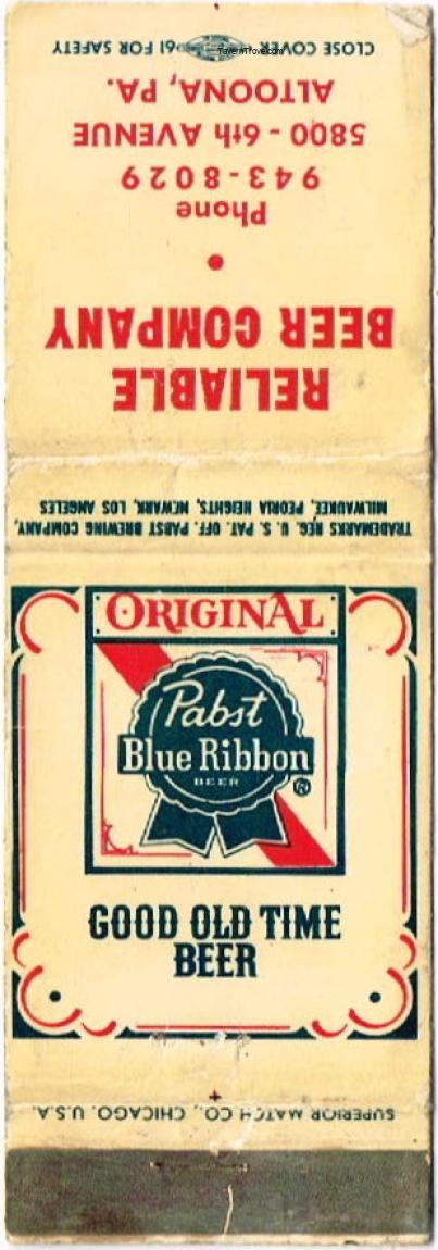 Pabst Blue Ribbon Beer Matchcover Item #38064