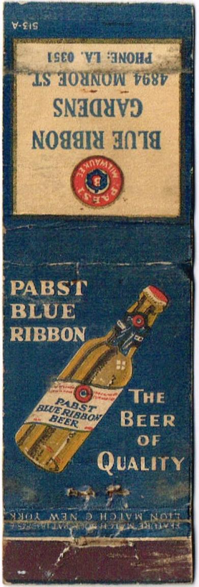 Pabst Blue Ribbon Beer Matchcover Item #58376