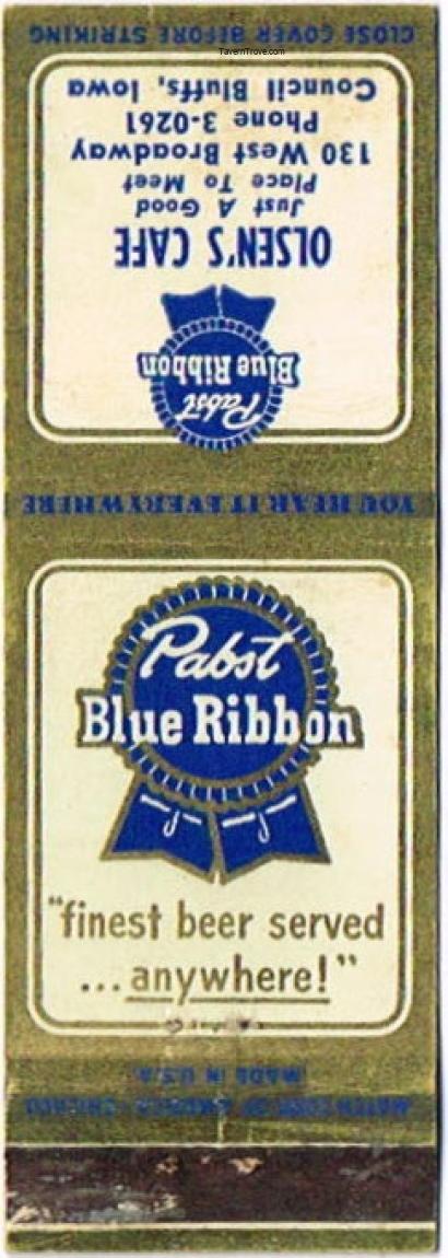 Pabst Blue Ribbon Beer Matchcover Item #99652