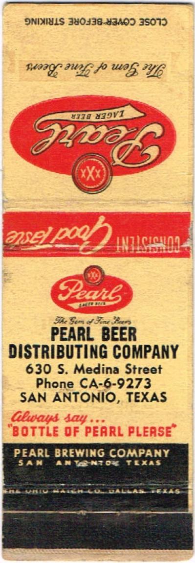 Pearl Lager Beer C (6 of 10) Matchcover Item #48235