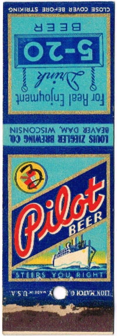 Pilot Beer/5-20 Beer Matchcover Item #111868