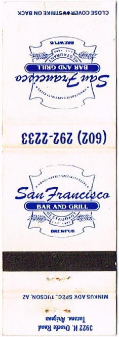 San Francisco Bar And Grill Matchcover Item #106779