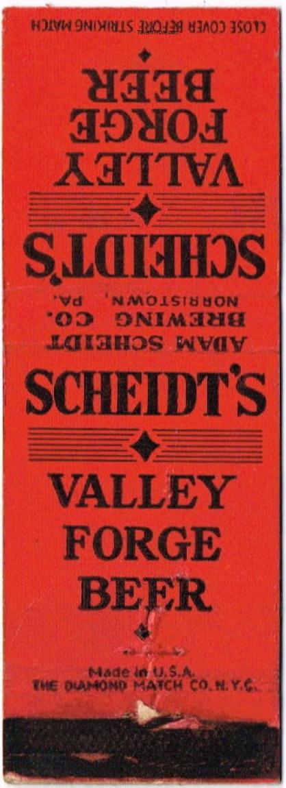 Scheidt's Valley Forge Beer Dupe Matchcover Item #110312