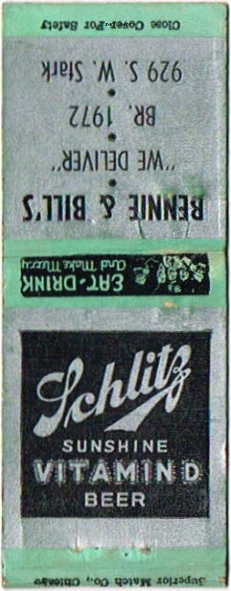 Schlitz Vitamin D Beer Matchcover Item #106363
