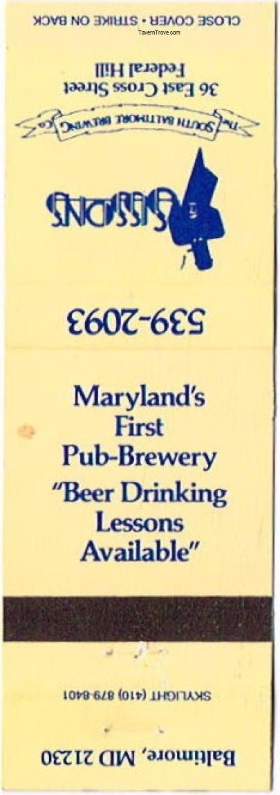 Sissons South Baltimore Brewing Co. Matchcover Item #106795