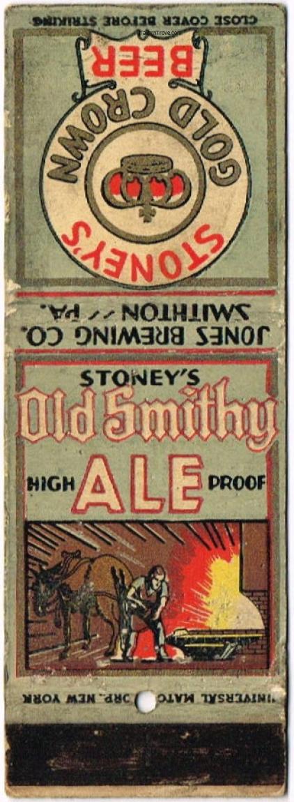 Stoney's Gold Crown Beer Old Smithy Ale Matchcover Item #84972