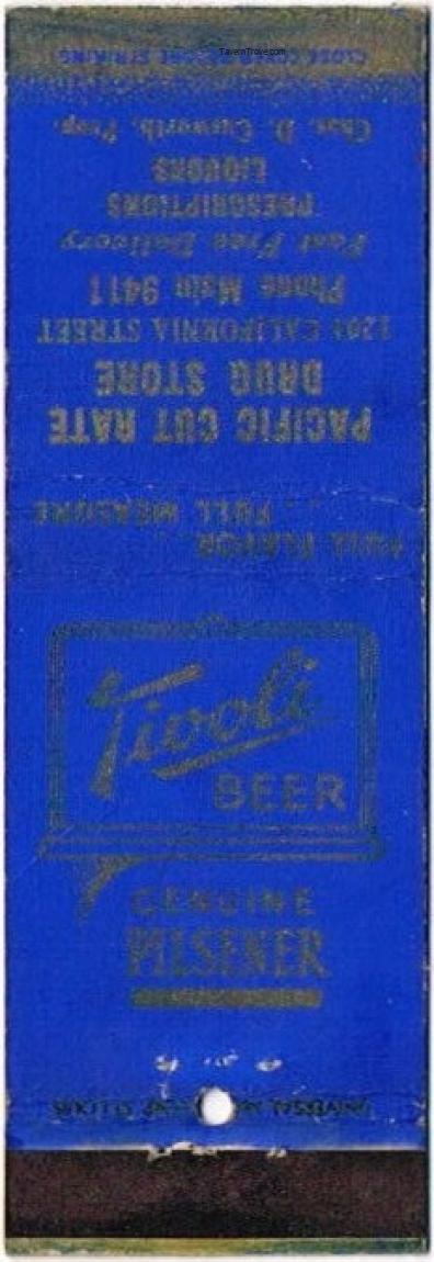Tivoli Beer Matchcover Item #104861