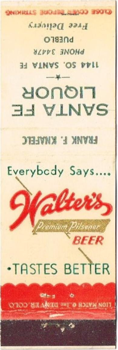 Walter's Premium Pilsener Beer Matchcover Item #93237