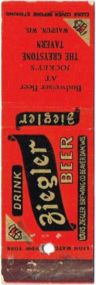 Ziegler/Budweiser Beer Matchcover Item #107884