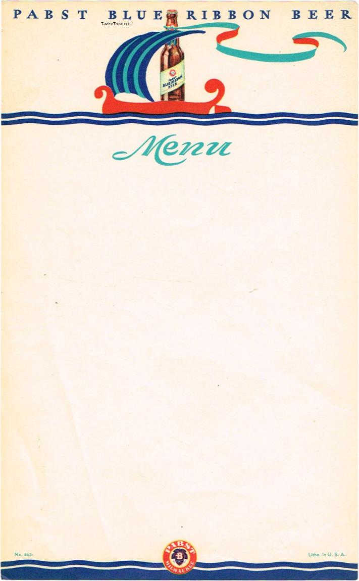 Pabst Blue Ribbon Beer Menu Sheet Item #98414