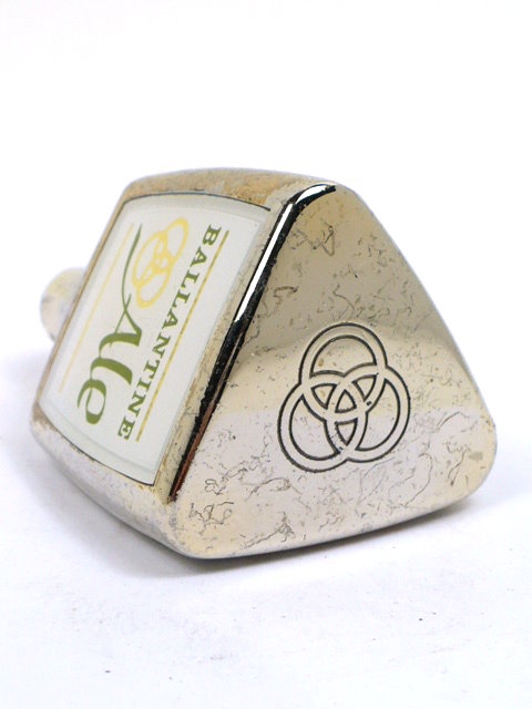 Heavy metal and Lucite tap handle. Chrome has bubbling where it meets the stem. Measures approximately 3¾ inches tall. Square base not included.