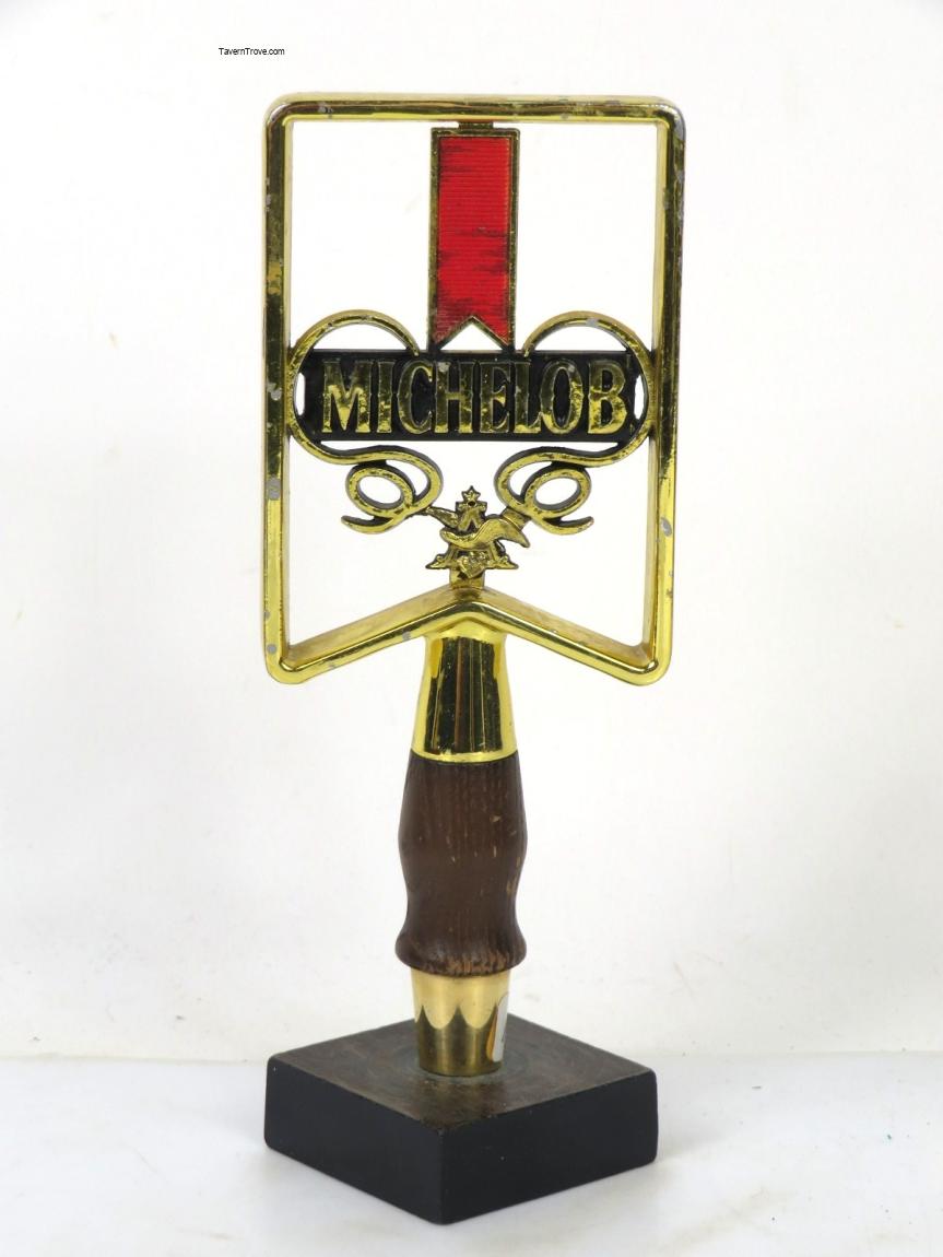 Wood and plastic tap handle. Light wear from use. Square brown base not included.