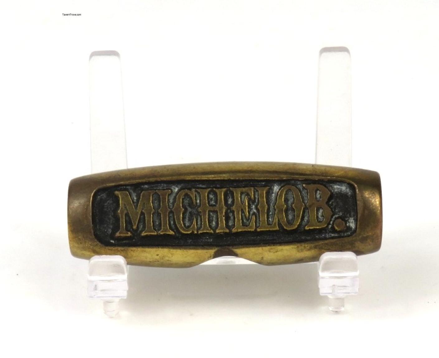 Scarce minimalist metal tap handle - displayed here on an extender and a wood stand, both of which are not included. Measures 2½ inches wide and about 5/8 inch in diameter.