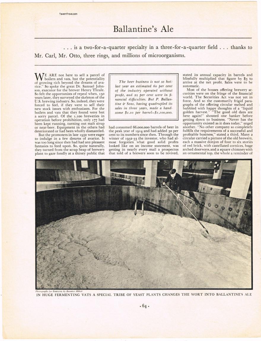 Ballantine's Ale Fortune Magazine Article Paper Ad Item #104436