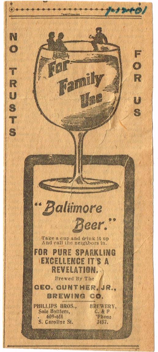 George Gunther's Baltimore Beer Paper Ad Item #104428
