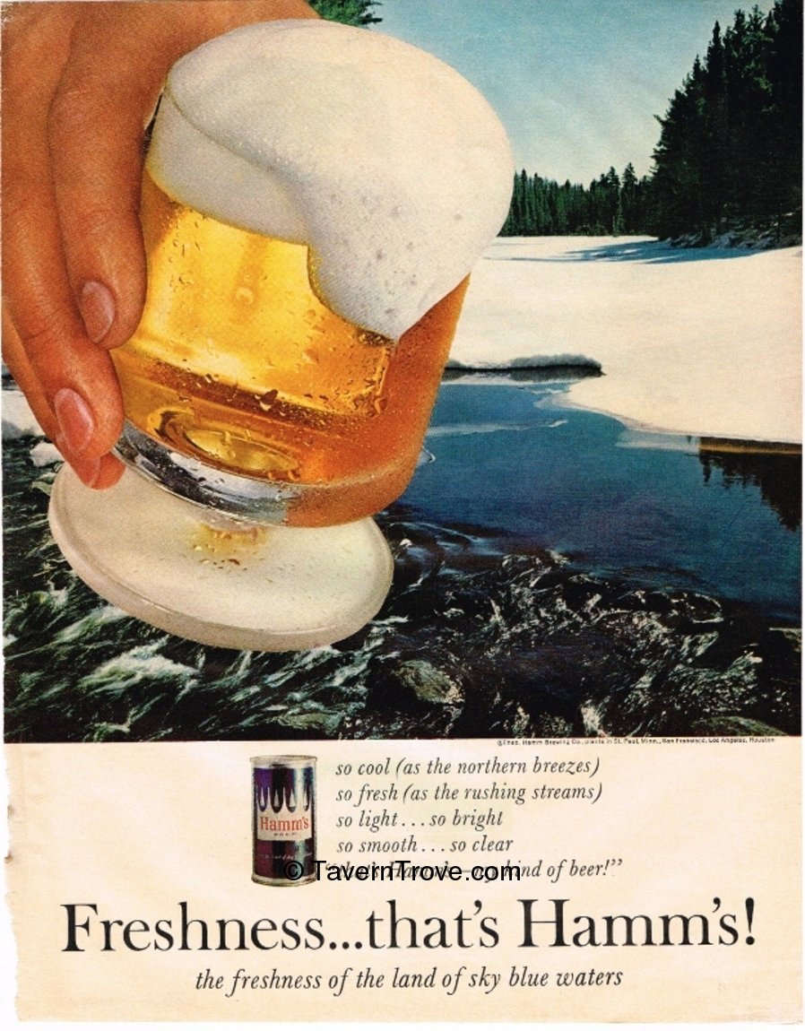 so cool (as the northern breezes) so fresh (as the rushing streams) so light . . so bright so smooth . . . so clear "that's Hamm's—my kind of beer!" Freshness...that's Hamm's! the freshness of the land of sky blue waters