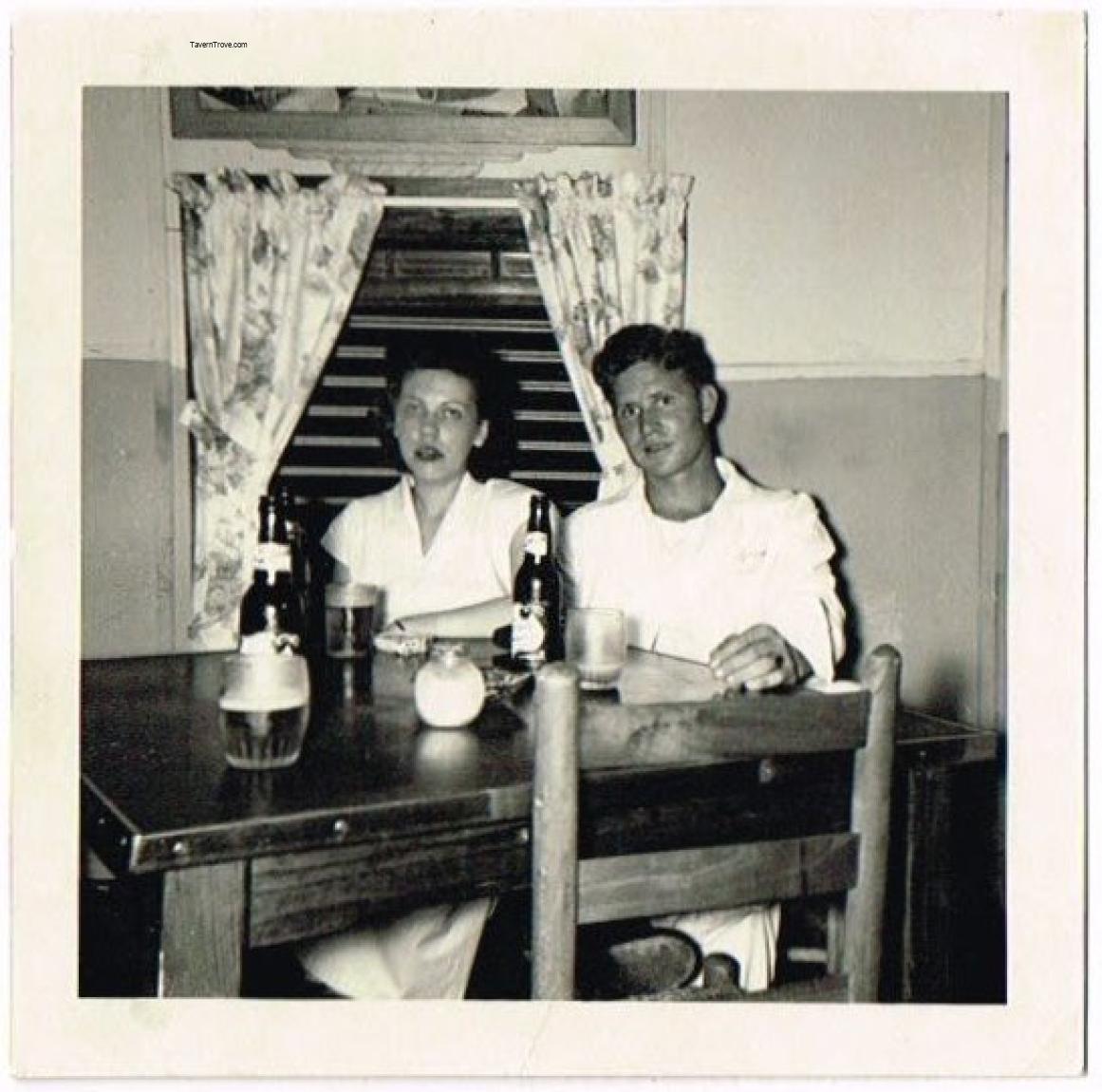 Candid photo of a couple at a copper-topped table drinking Falstaff Beer Original photo. Measures 3½ inches.