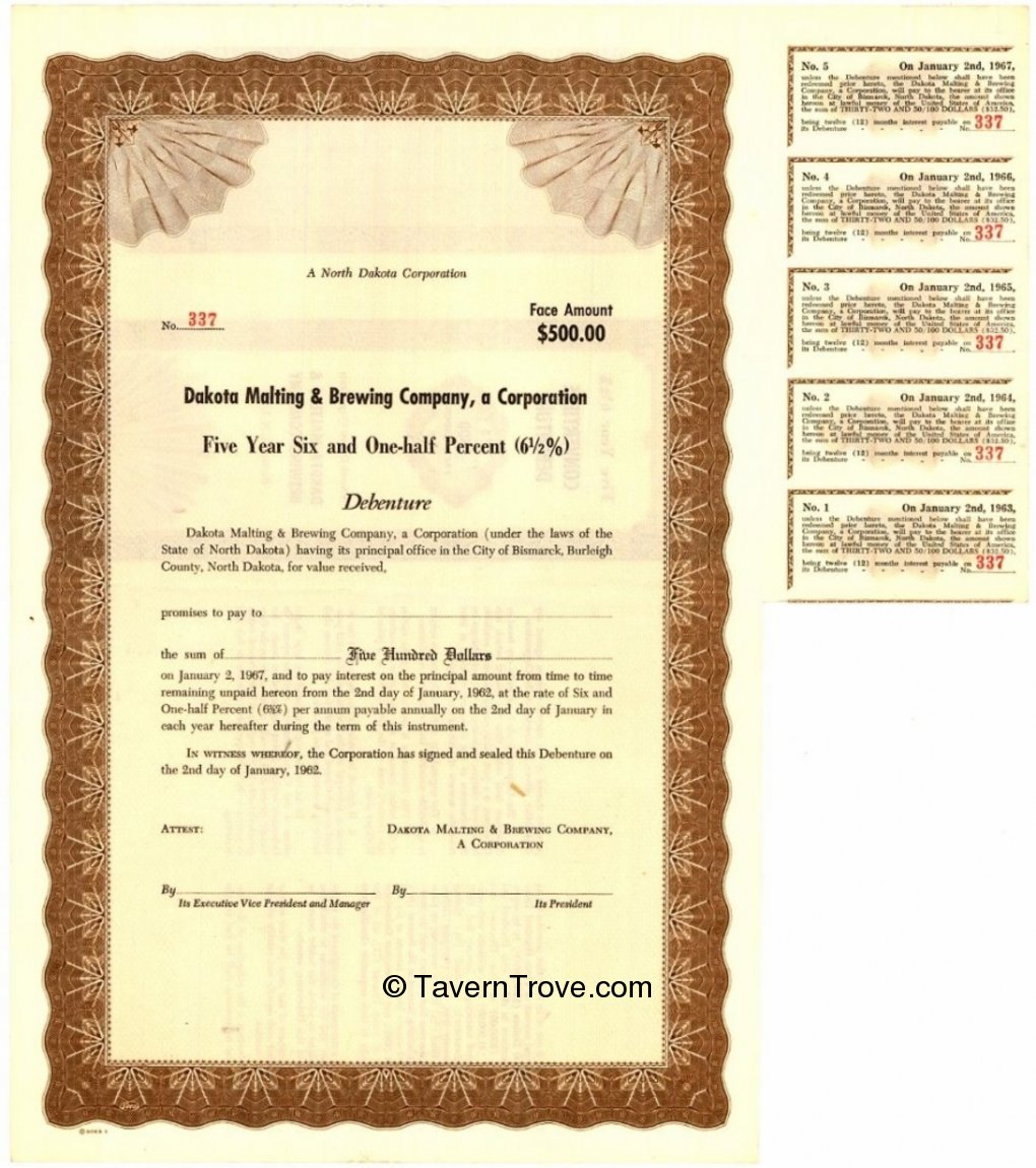Dakota Brewing & Malting Co. Stock Certificate Item #90214