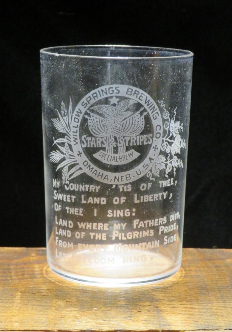 Delicate drinking glass with an acid-etched label featuring the lyrics to the song "My Country 'Tis Of Thee". Nice, strong, and even etching. Two small chips on the rim.